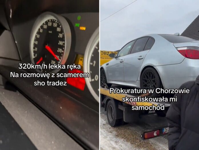Pojazd został zabezpieczony jako dowód w sprawie. Śledczy analizują nie tylko nagranie, ale też ustalają, kto w momencie jazdy siedział za kierownicą. Właściciel auta twierdzi, że niekoniecznie to on prowadził i określa działania prokuratury jako „na wyrost”. Uważa też, że decyzja o zajęciu auta to skutek medialnej nagonki.
